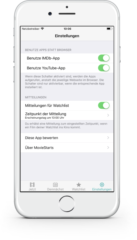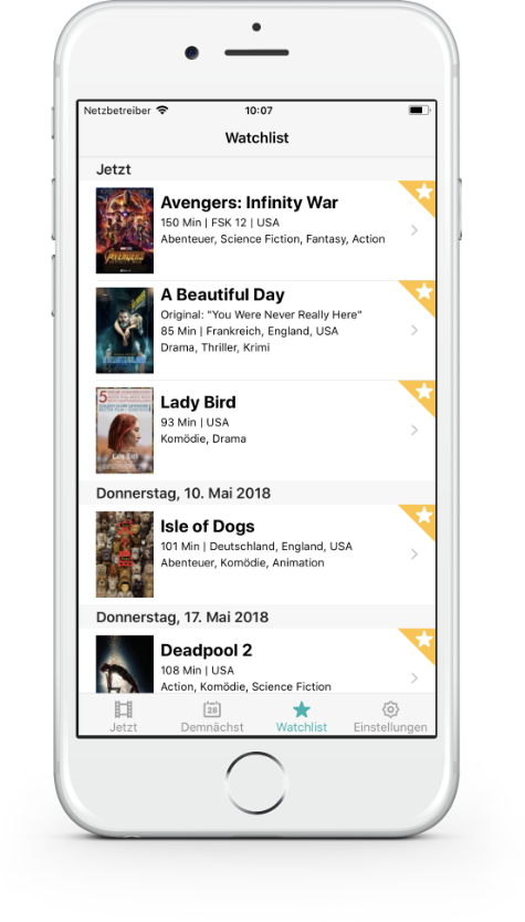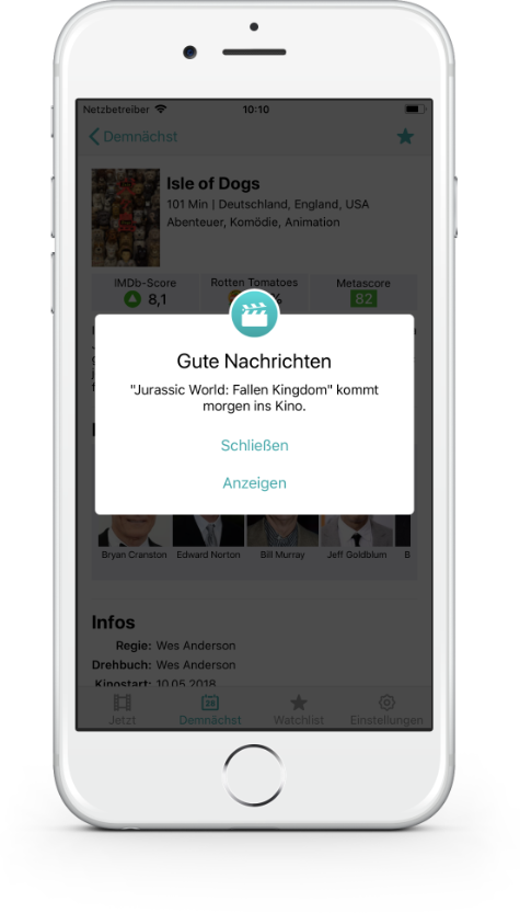 Optionale Push-Mitteilung, wenn deine Favoriten-Filme ins Kino kommen.